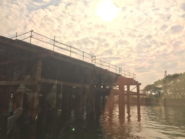 ⬇️ 這座橋墩,是日據時代所遺留下來的,也是愛河與海的分界點。而輕軌也藉著橋墩繼續往對岸蓋,算是新舊社施的ㄧ種結合。